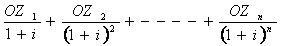 Súčasná hodnota = výnos v 1. roku : (1 + výnosová miera) + výnos v 2. roku : (1 + výnosová miera) 2 + výnos v 3. roku : (1+ výnosová miera) 3...+ výnos v n-tom roku : (1+ výnosová miera) n. |